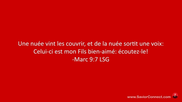 Une nuée vint les couvrir, et de la nuée sortit une voix: Celui-ci est mon Fils bien-aimé: écoutez-le! -Marc 9:7 LSG