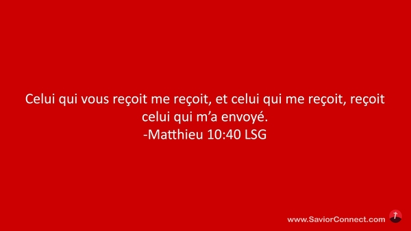 Celui qui vous reçoit me reçoit, et celui qui me reçoit, reçoit celui qui m'a envoyé. -Matthieu 10:40 LSG
