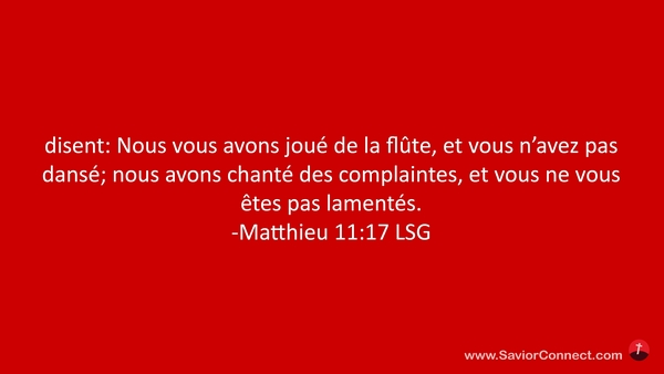 disent: Nous vous avons joué de la flûte, et vous n'avez pas dansé; nous avons chanté des complaintes, et vous ne vous êtes pas lamentés. -Matthieu 11:17 LSG