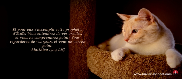 Et pour eux s'accomplit cette prophétie d'Ésaïe: Vous entendrez de vos oreilles, et vous ne comprendrez point; Vous regarderez de vos yeux, et vous ne verrez point. -Matthieu 13:14 LSG