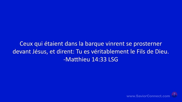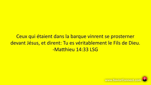 Ceux qui étaient dans la barque vinrent se prosterner devant Jésus, et dirent: Tu es véritablement le Fils de Dieu. -Matthieu 14:33 LSG