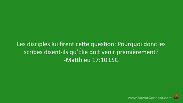 Les disciples lui firent cette question: Pourquoi donc les scribes disent-ils qu'Élie doit venir premièrement? -Matthieu 17:10 LSG
