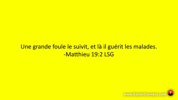 Une grande foule le suivit, et là il guérit les malades. -Matthieu 19:2 LSG