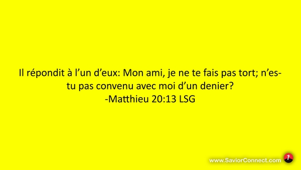 Il répondit à l'un d'eux: Mon ami, je ne te fais pas tort; n'es-tu pas convenu avec moi d'un denier? -Matthieu 20:13 LSG