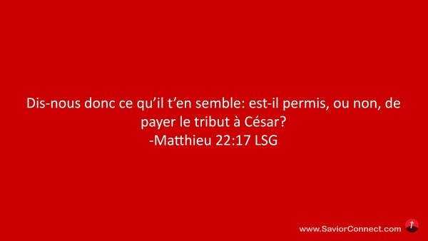 Dis-nous donc ce qu'il t'en semble: est-il permis, ou non, de payer le tribut à César? -Matthieu 22:17 LSG