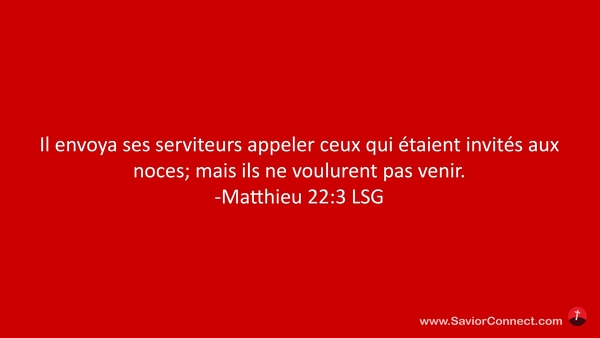 Il envoya ses serviteurs appeler ceux qui étaient invités aux noces; mais ils ne voulurent pas venir. -Matthieu 22:3 LSG
