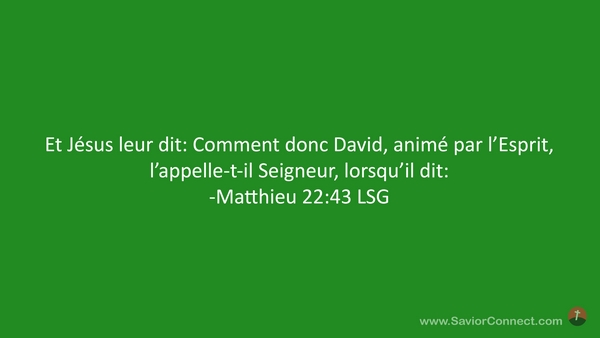 Et Jésus leur dit: Comment donc David, animé par l'Esprit, l'appelle-t-il Seigneur, lorsqu'il dit: -Matthieu 22:43 LSG