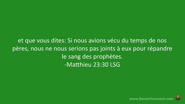 et que vous dites: Si nous avions vécu du temps de nos pères, nous ne nous serions pas joints à eux pour répandre le sang des prophètes. -Matthieu 23:30 LSG
