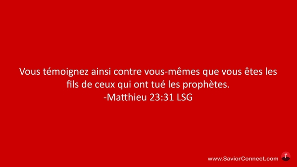 Vous témoignez ainsi contre vous-mêmes que vous êtes les fils de ceux qui ont tué les prophètes. -Matthieu 23:31 LSG