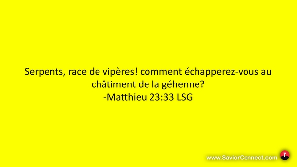 Serpents, race de vipères! comment échapperez-vous au châtiment de la géhenne? -Matthieu 23:33 LSG