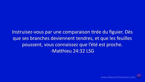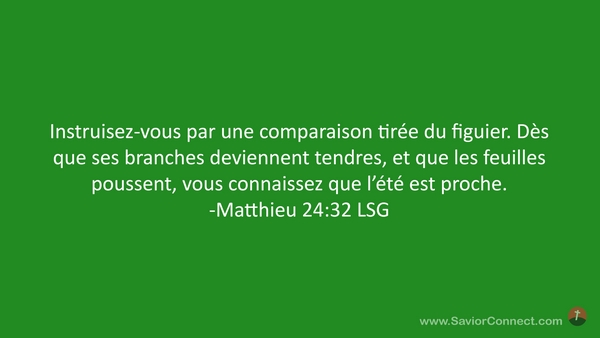 Instruisez-vous par une comparaison tirée du figuier. Dès que ses branches deviennent tendres, et que les feuilles poussent, vous connaissez que l'été est proche. -Matthieu 24:32 LSG