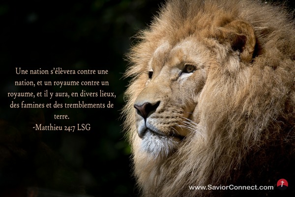 Une nation s'élèvera contre une nation, et un royaume contre un royaume, et il y aura, en divers lieux, des famines et des tremblements de terre. -Matthieu 24:7 LSG