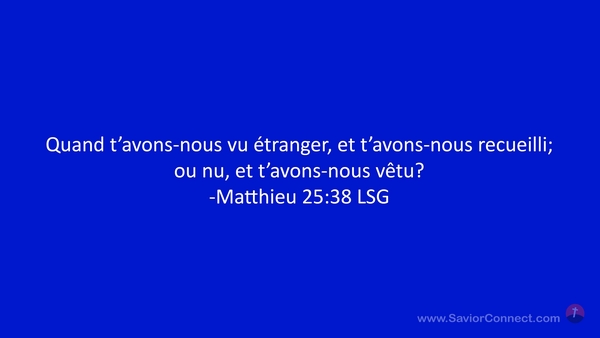 Quand t'avons-nous vu étranger, et t'avons-nous recueilli; ou nu, et t'avons-nous vêtu? -Matthieu 25:38 LSG