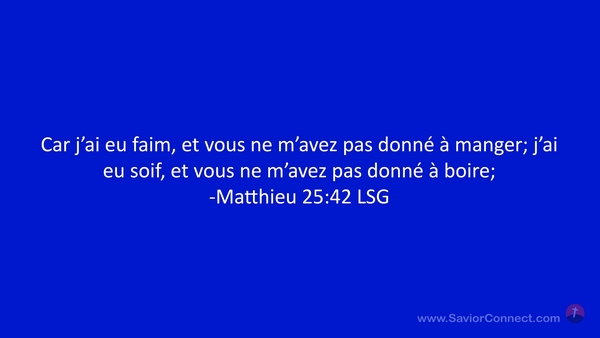 Car j'ai eu faim, et vous ne m'avez pas donné à manger; j'ai eu soif, et vous ne m'avez pas donné à boire; -Matthieu 25:42 LSG