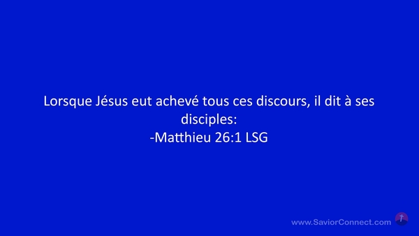 Lorsque Jésus eut achevé tous ces discours, il dit à ses disciples: -Matthieu 26:1 LSG