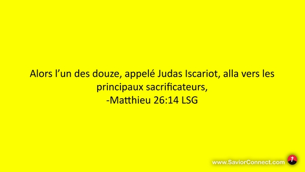 Alors l'un des douze, appelé Judas Iscariot, alla vers les principaux sacrificateurs, -Matthieu 26:14 LSG