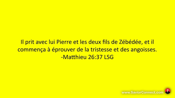 Il prit avec lui Pierre et les deux fils de Zébédée, et il commença à éprouver de la tristesse et des angoisses. -Matthieu 26:37 LSG