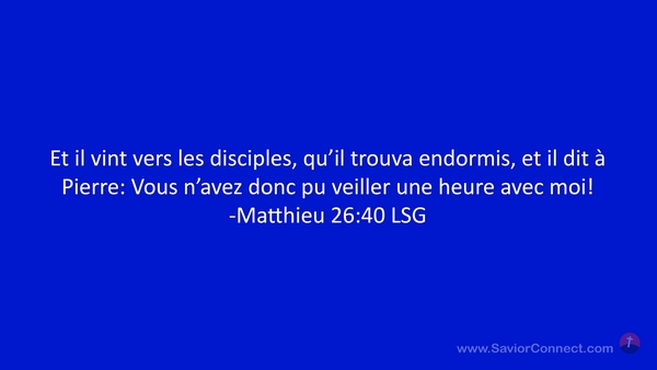 Et il vint vers les disciples, qu'il trouva endormis, et il dit à Pierre: Vous n'avez donc pu veiller une heure avec moi! -Matthieu 26:40 LSG