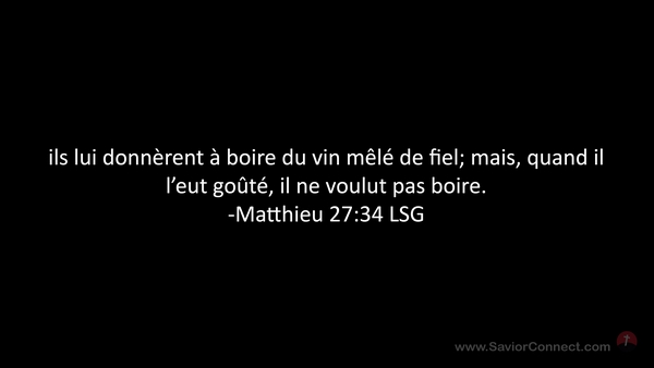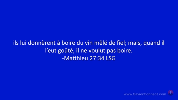 ils lui donnèrent à boire du vin mêlé de fiel; mais, quand il l'eut goûté, il ne voulut pas boire. -Matthieu 27:34 LSG