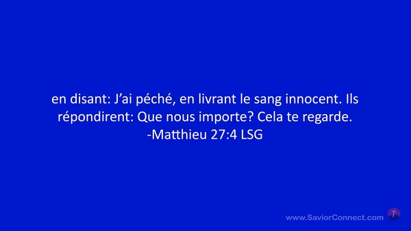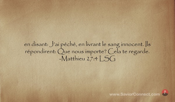 en disant: J'ai péché, en livrant le sang innocent. Ils répondirent: Que nous importe? Cela te regarde. -Matthieu 27:4 LSG