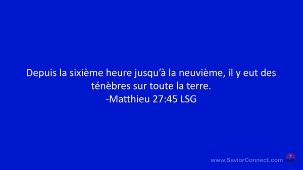 Depuis la sixième heure jusqu'à la neuvième, il y eut des ténèbres sur toute la terre. -Matthieu 27:45 LSG