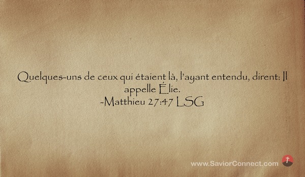 Quelques-uns de ceux qui étaient là, l'ayant entendu, dirent: Il appelle Élie. -Matthieu 27:47 LSG