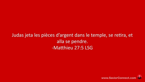 Judas jeta les pièces d'argent dans le temple, se retira, et alla se pendre. -Matthieu 27:5 LSG