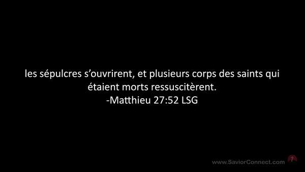 les sépulcres s'ouvrirent, et plusieurs corps des saints qui étaient morts ressuscitèrent. -Matthieu 27:52 LSG