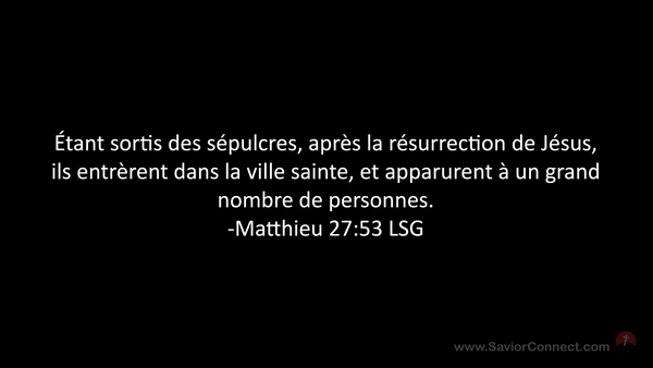 Étant sortis des sépulcres, après la résurrection de Jésus, ils entrèrent dans la ville sainte, et apparurent à un grand nombre de personnes. -Matthieu 27:53 LSG