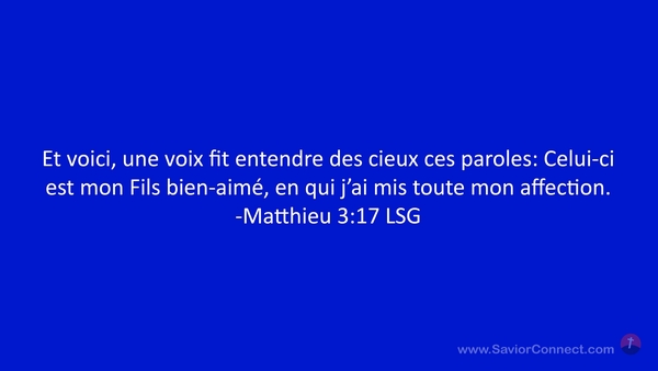 Et voici, une voix fit entendre des cieux ces paroles: Celui-ci est mon Fils bien-aimé, en qui j'ai mis toute mon affection. -Matthieu 3:17 LSG