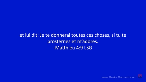 et lui dit: Je te donnerai toutes ces choses, si tu te prosternes et m'adores. -Matthieu 4:9 LSG