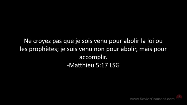 Ne croyez pas que je sois venu pour abolir la loi ou les prophètes; je suis venu non pour abolir, mais pour accomplir. -Matthieu 5:17 LSG