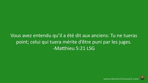 Vous avez entendu qu'il a été dit aux anciens: Tu ne tueras point; celui qui tuera mérite d'être puni par les juges. -Matthieu 5:21 LSG