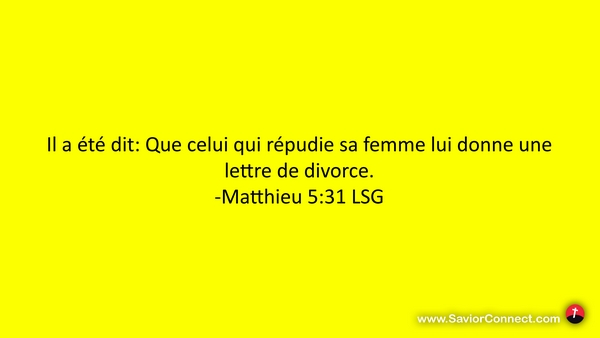 Il a été dit: Que celui qui répudie sa femme lui donne une lettre de divorce. -Matthieu 5:31 LSG