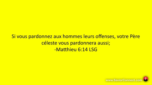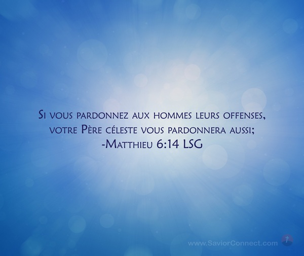 Si vous pardonnez aux hommes leurs offenses, votre Père céleste vous pardonnera aussi; -Matthieu 6:14 LSG