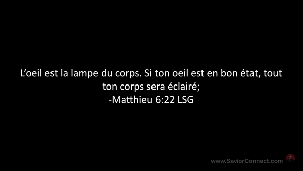 L'oeil est la lampe du corps. Si ton oeil est en bon état, tout ton corps sera éclairé; -Matthieu 6:22 LSG