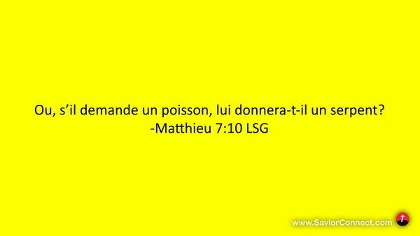 Ou, s'il demande un poisson, lui donnera-t-il un serpent? -Matthieu 7:10 LSG