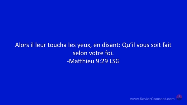 Alors il leur toucha les yeux, en disant: Qu'il vous soit fait selon votre foi. -Matthieu 9:29 LSG