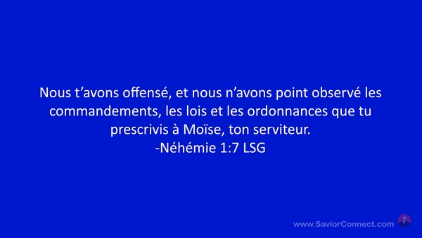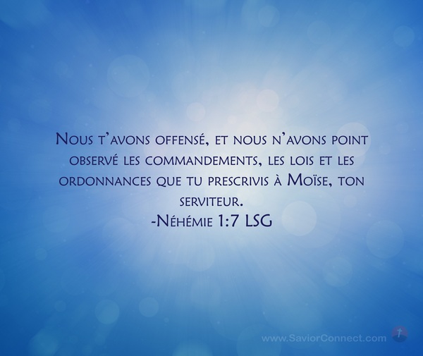 Nous t'avons offensé, et nous n'avons point observé les commandements, les lois et les ordonnances que tu prescrivis à Moïse, ton serviteur. -Néhémie 1:7 LSG