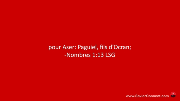 pour Aser: Paguiel, fils d'Ocran; -Nombres 1:13 LSG