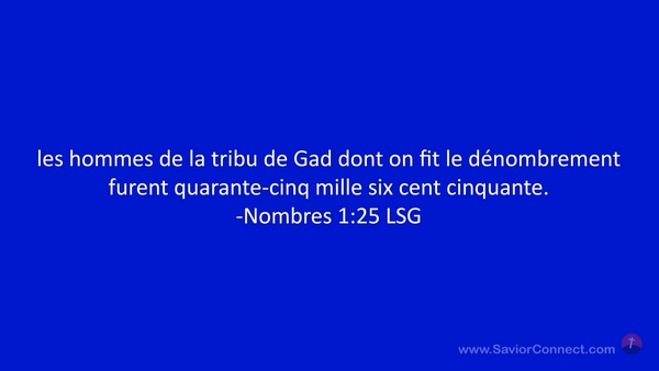 les hommes de la tribu de Gad dont on fit le dénombrement furent quarante-cinq mille six cent cinquante. -Nombres 1:25 LSG