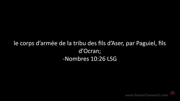 le corps d'armée de la tribu des fils d'Aser, par Paguiel, fils d'Ocran; -Nombres 10:26 LSG