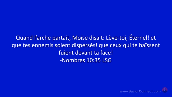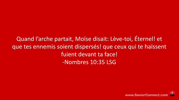 Quand l'arche partait, Moïse disait: Lève-toi, Éternel! et que tes ennemis soient dispersés! que ceux qui te haïssent fuient devant ta face! -Nombres 10:35 LSG