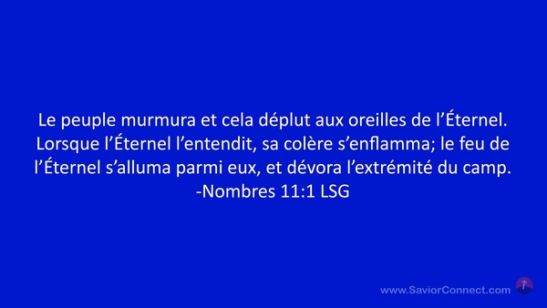 Le peuple murmura et cela déplut aux oreilles de l'Éternel. Lorsque l'Éternel l'entendit, sa colère s'enflamma; le feu de l'Éternel s'alluma parmi eux, et dévora l'extrémité du camp. -Nombres 11:1 LSG