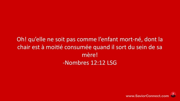 Oh! qu'elle ne soit pas comme l'enfant mort-né, dont la chair est à moitié consumée quand il sort du sein de sa mère! -Nombres 12:12 LSG