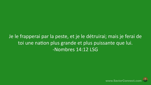 Je le frapperai par la peste, et je le détruirai; mais je ferai de toi une nation plus grande et plus puissante que lui. -Nombres 14:12 LSG