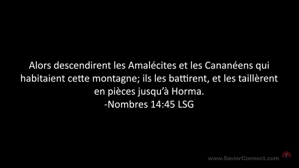 Alors descendirent les Amalécites et les Cananéens qui habitaient cette montagne; ils les battirent, et les taillèrent en pièces jusqu'à Horma. -Nombres 14:45 LSG