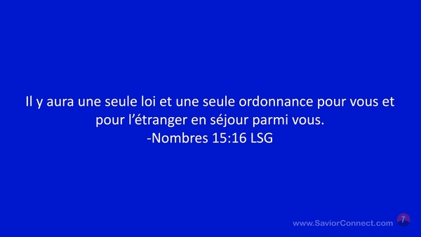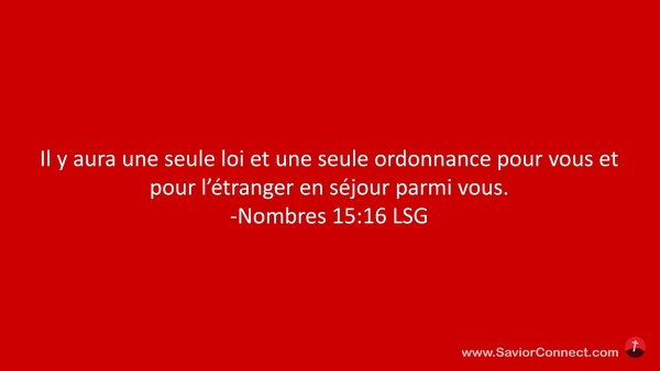Il y aura une seule loi et une seule ordonnance pour vous et pour l'étranger en séjour parmi vous. -Nombres 15:16 LSG