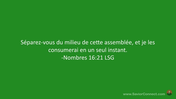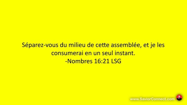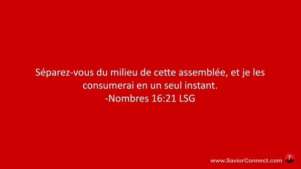 Séparez-vous du milieu de cette assemblée, et je les consumerai en un seul instant. -Nombres 16:21 LSG