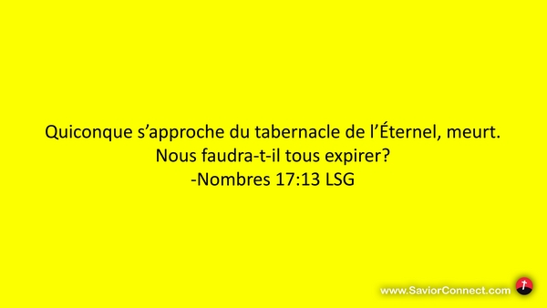 Quiconque s'approche du tabernacle de l'Éternel, meurt. Nous faudra-t-il tous expirer? -Nombres 17:13 LSG